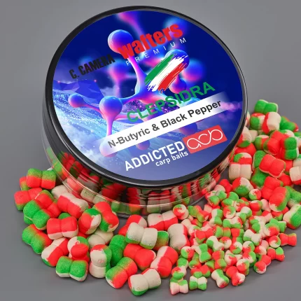 Culorile vibrante sunt vizibile în orice apă, iar aroma N butyric & Black Pepper declanșează o atracție irezistibilă. Testat de pescari de elită, Wafters Clepsidra PremiumN butyric & Black Pepper oferă flotabilitate excelentă și performanță dovedită în orice mediu.