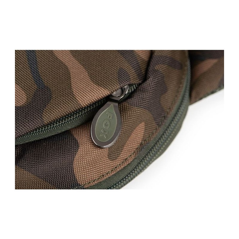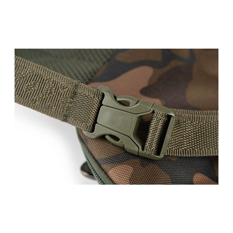 Fox Camolite Shoulder Wallet este un hibrid multifunctional, intre un rucsac de umar si un portofel de dimensiuni mai mari, confectionat din polyester 500D rezistent la murdarie si uzura. Este proiectat astfel incat sa poata pastra in deplina siguranta lucrurile de valoare (telefon, bani, portofel etc.) dar si alte accesorii de pescuit. Poate stoca inclusiv portofelul Fox License Wallets sau permisul de pescuit.