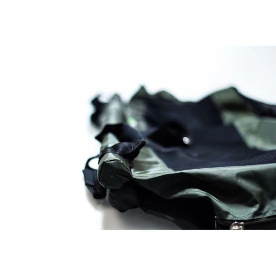 Barele de sustinere, ajustabile, sunt solide si usoare, fiind prevazute cu flotoare pentru mentinerea saltelei la suprafata, daca aceasta va fi tinuta in apa usurand astfel eliberarea pestelui fara al forta. Salteaua dispune de un fermoar dublu pe toata lungimea, securizand astfel pestele impotriva eliberarii accidentale.