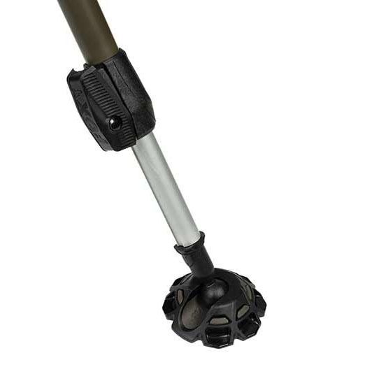 Scaunul este dotat cu un nou mecanism cu arc pentru picioare, care permite ajustarea rapida si usoara a inaltimii printr-o singura apasare, economisind timp si efort. Picioarele pot fi blocate ferm datorita cadrului special conceput, oferind o stabilitate de invidiat chiar si pe teren denivelat. Reglarea unghiului spatarului se face simplu, cu ajutorul unei rotite zimtate precise, oferind multiple pozitii de sedere, de la relaxare completa pana la pozitii mai active de pescuit.